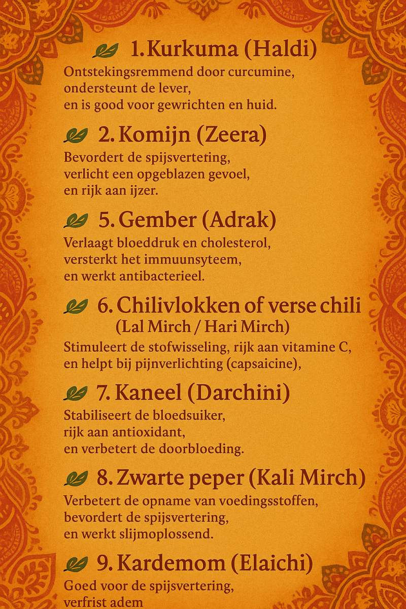 Hieronder vind je van een aantal veelgebruikte kruiden, de gezondheidsvoordelen.